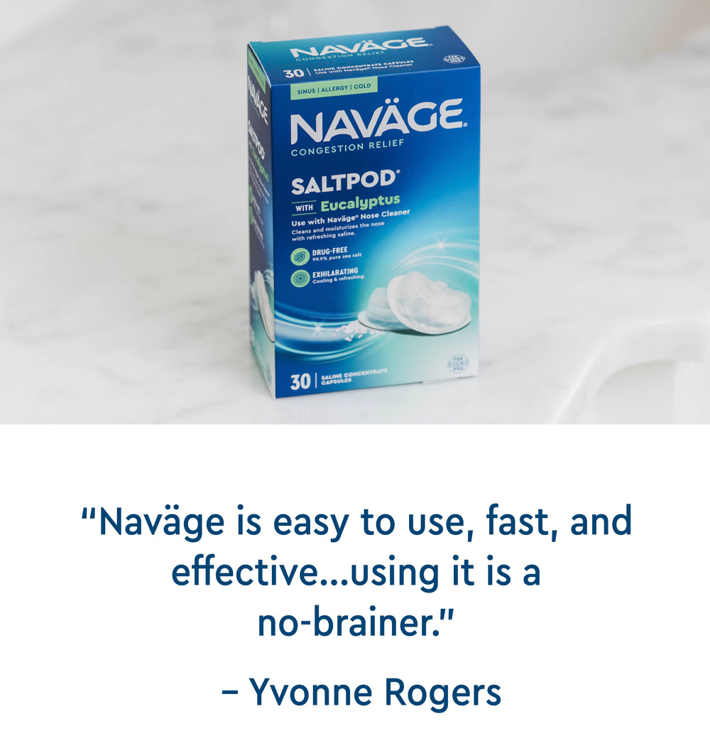 “I recommend to everyone, especially athletes, workout buffs, allergy sufferers, and cold sufferers. I tell them consistently using the Naväge will help alleviate and sometimes eliminate their symptoms. I accidentally forgot my Naväge once on vacation. I noticed a difference. Not using it also impacts my workouts during allergy season.”