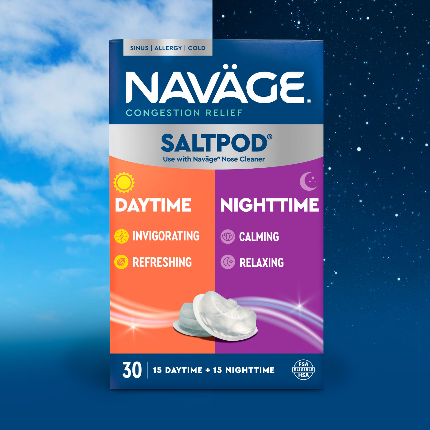 Designed with your nose in mind. Naväge helps relieve nasal congestion and stuffiness by washing and moisturizing the nasal cavity with a pressure-controlled stream of saline. With one-touch, Naväge uses powered suction to flush out mucus and germs, the device does the work to send you on your way to a better day. Bundle includes: