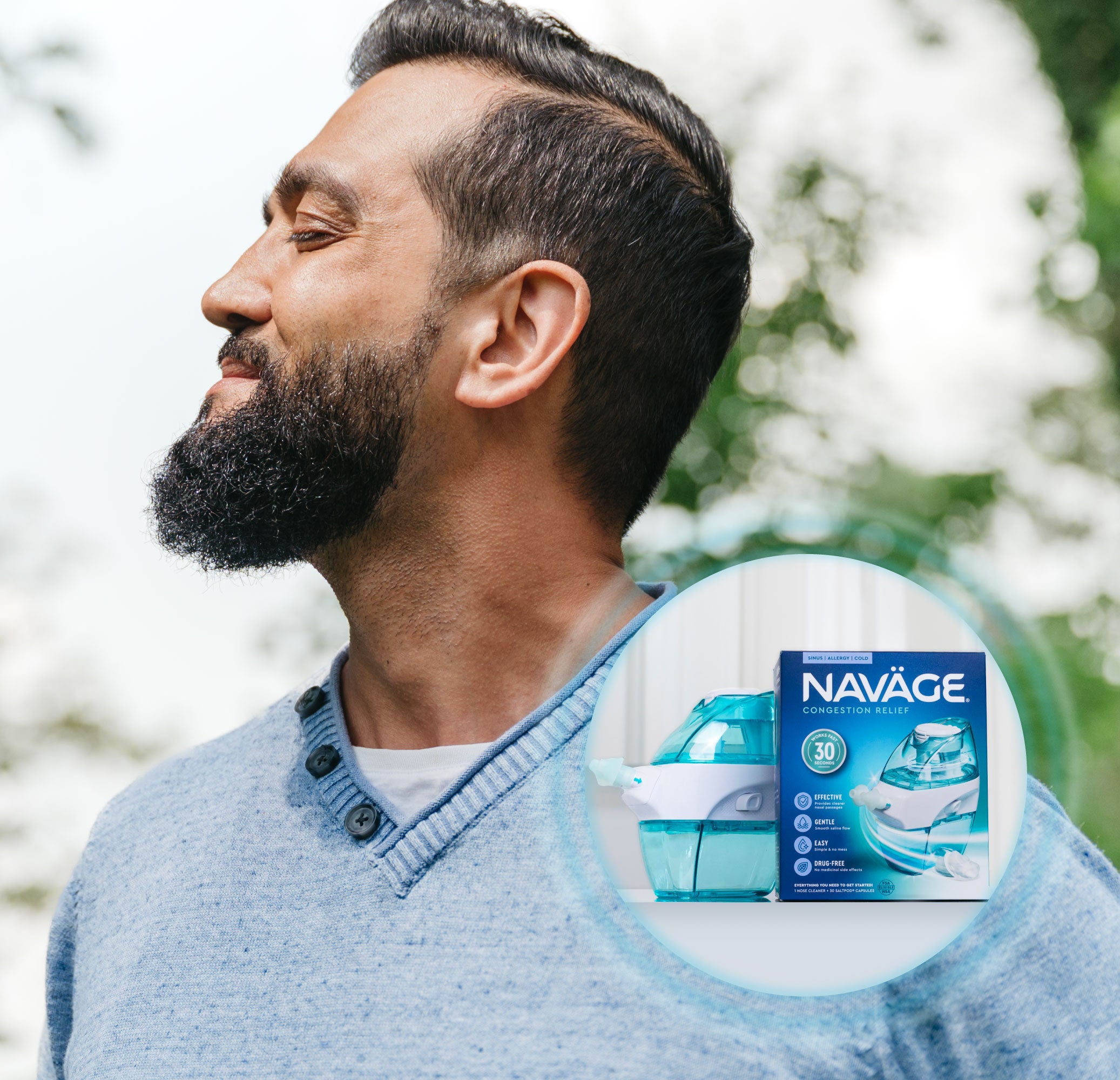 Naväge flushes out allergens for drug-free, effective relief from seasonal or year-round symptoms.